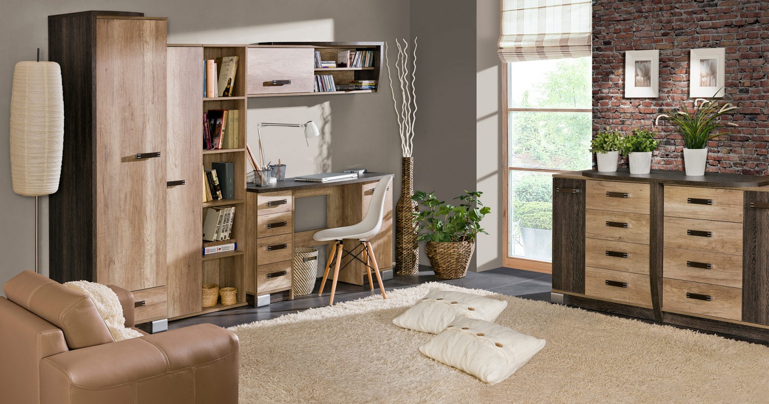 Systém Romero je jedinečnou nabídkou v této kategorii. Moderní, originální design, originální, přírodní ekologické barvy (kombinace barev dub canyon + arusha) dodají charakter každému interiéru - modernímu i klasickému. Tento systém nabízíme jako vybavení obývacího pokoje, ale jednotlivé prvky lze použít i ve zbytku bytu. Možnost použití prvků v levém i pravém provedení dává neomezené možnosti konfigurace různých rozložení.