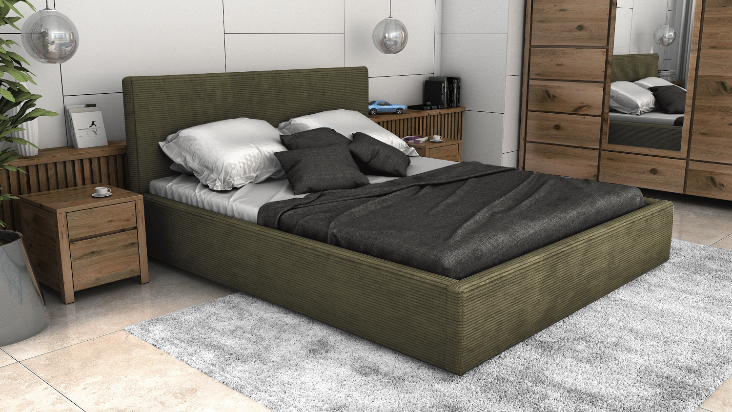 Postel LINCOLN 160x200 olivová s úložným prostorem - manšestr - LINCOLN 37