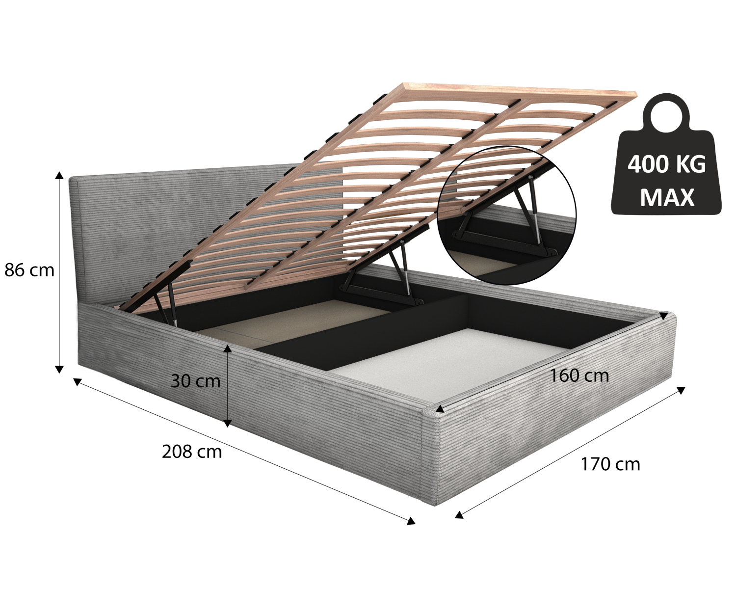 Postel LINCOLN 160x200 s úložným prostorem - rozměry (4/7)