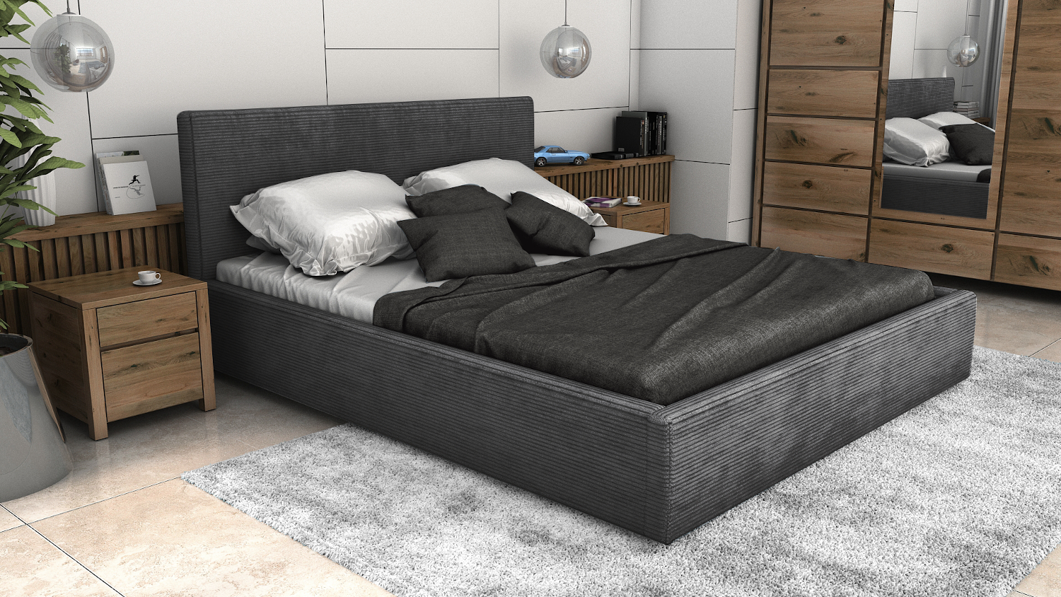 Postel LINCOLN 160x200 tmavěšedá s úložným prostorem - manšestr - LINCOLN 90