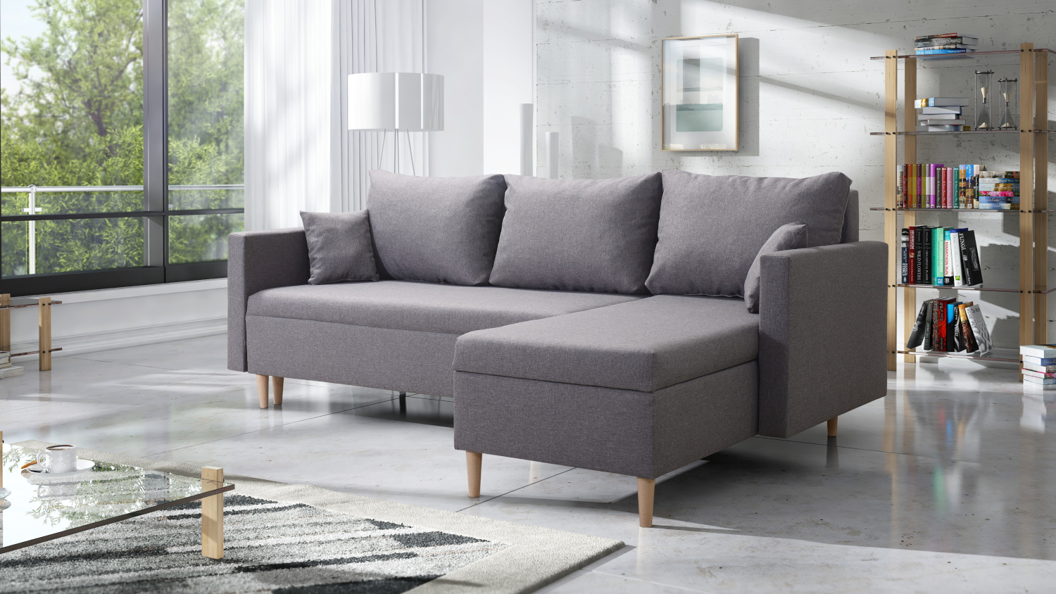 Rozkládací rohová pohovka SCANDIK se vyznačuje skandinávským designem, který je v domácnostech stále neuvěřitelně oblíbený. Vysoké nohy z přírodního dřeva a mimořádně odolná látka dělají z této rozkládací rohové pohovky bezchybný doplněk každého obývacího pokoje.