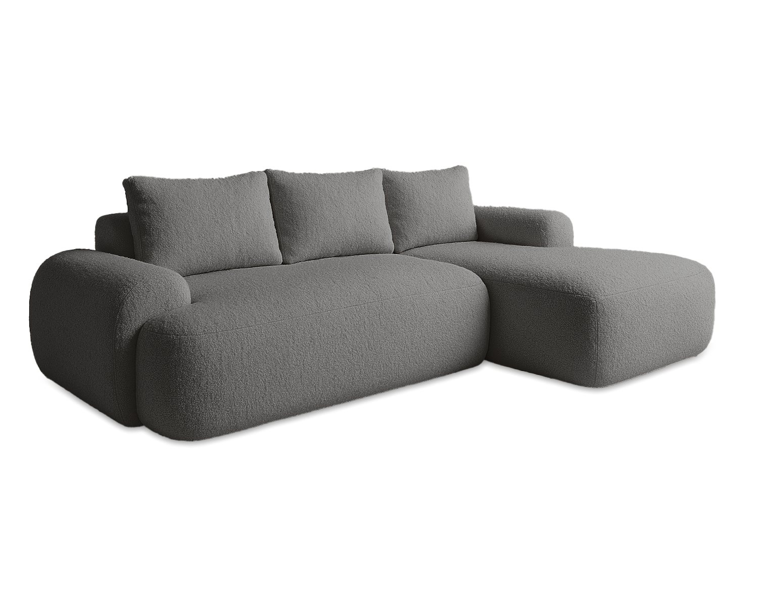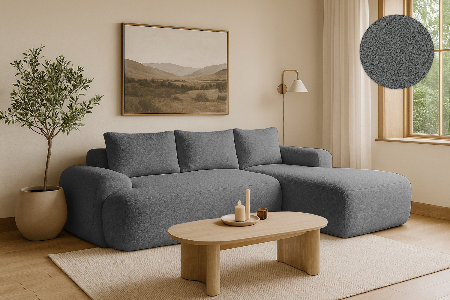 Popis: Rohová rozkládací sedačka FLAVIO - grafitová - bouclé - NOW OR NEVER 92