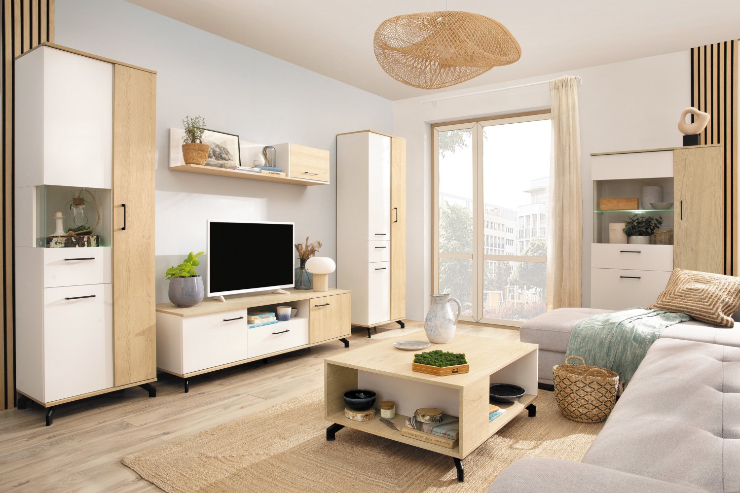 Velmi vřelá kombinace vhodná do každé domácnosti, kde místnost provzduší a naplní komfortní energií. Přesně takto působí na lidskou mysl nábytek v bílé barvě s kombinací dekoru dřeva, jako jsou například skříňky a vitríny do obýváku. Takové kousky nabízíme v různých variantách, takže si můžete z jedné série vybrat dostatek kousků nábytku pro vybavení klidně celé domácnosti z široké nabídky skříněk různých velikosí, s policemi, dvířky, kombinací obého a podobně.